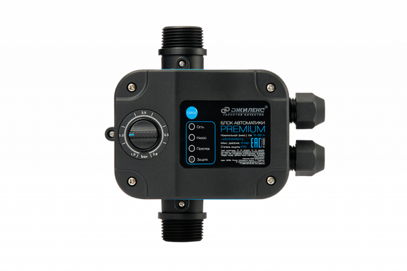 Блок автоматики PREMIUM предназначен для автоматического управления погружными и поверхностными насосами. В конструкцию встроена защита от "сухого хода", работы "в тупик" и перегрева.